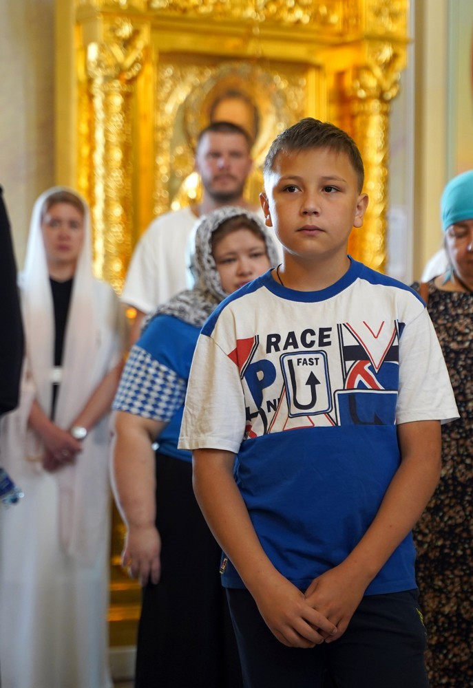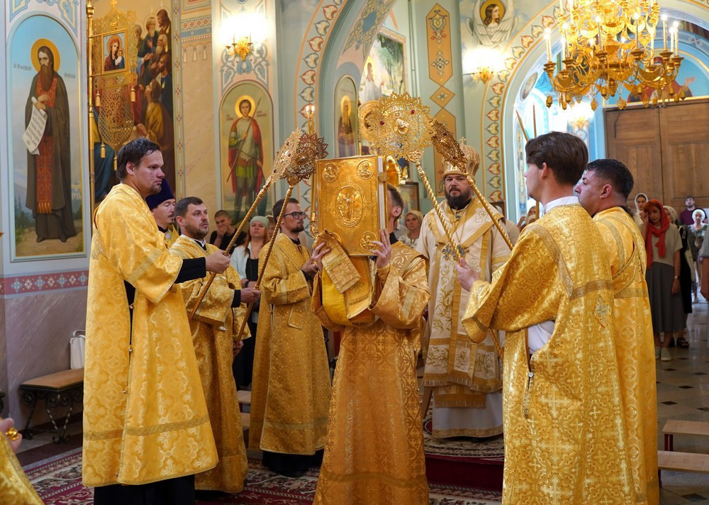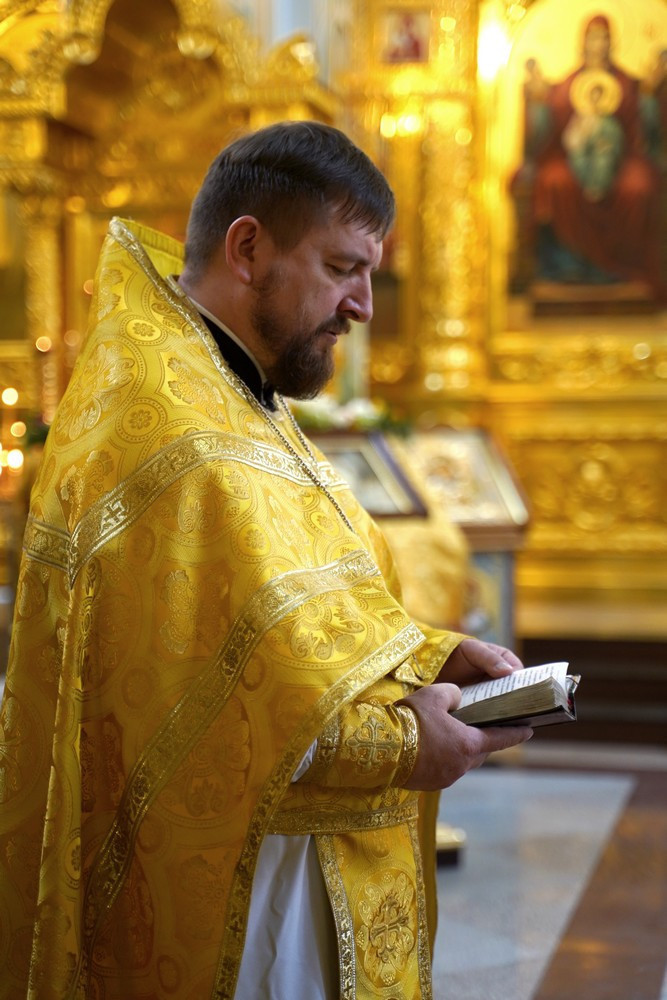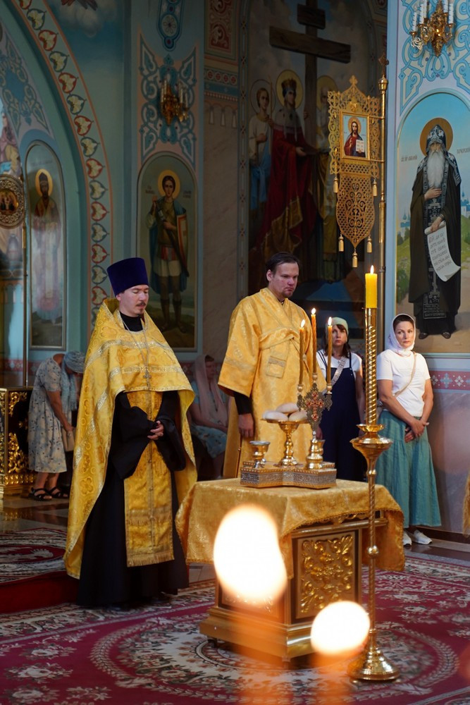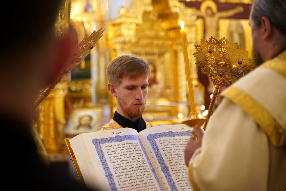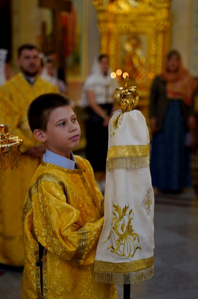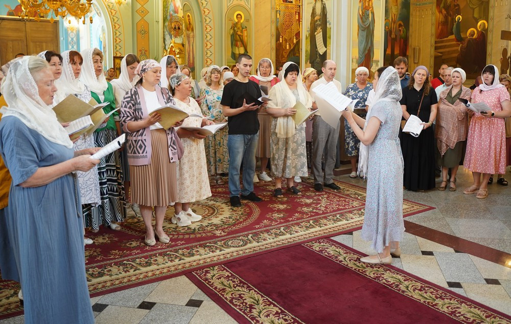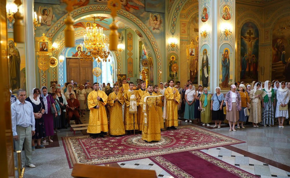 На сугубой ектении были вознесены молитвы о Святой Руси. Богослужебные песнопения исполнил хор собора под управлением регента Екатерины Артюховой. Часть песнопений исполнил народный хор прихожан кафедрального собора.