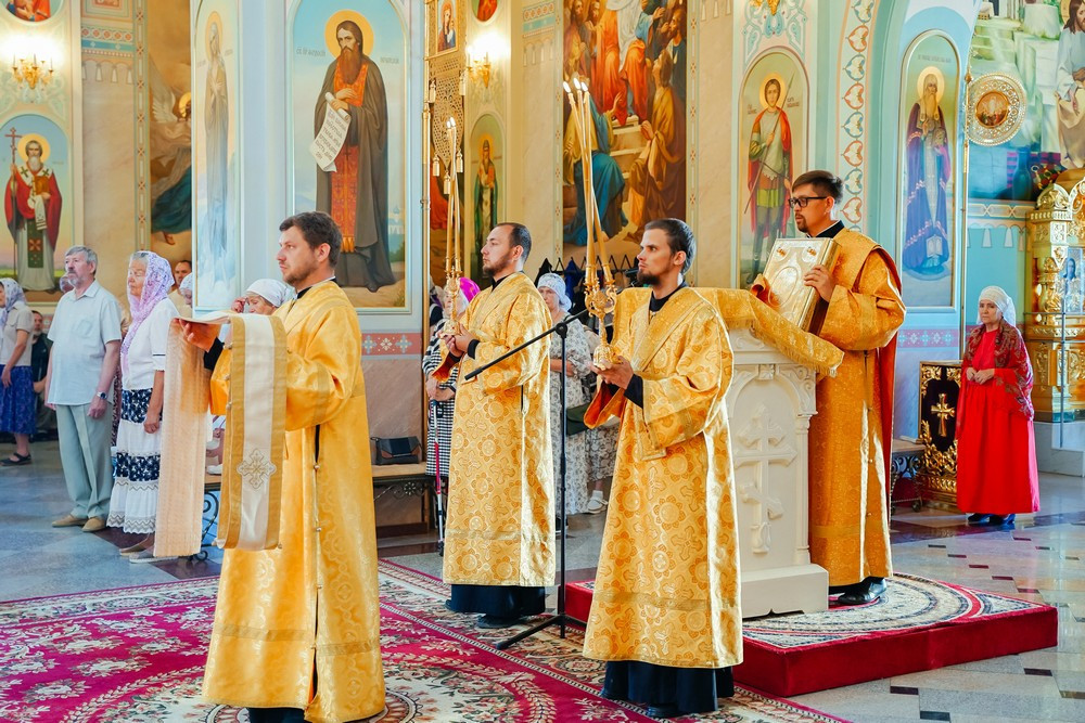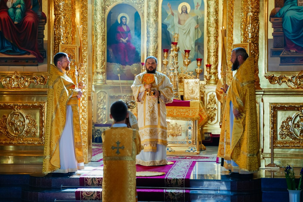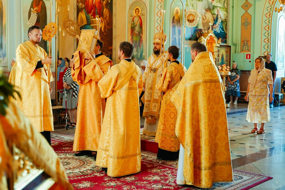 Его Преосвященству сослужили: протоиерей Симеон Сухомлинов, иерей Константин Беличенко.