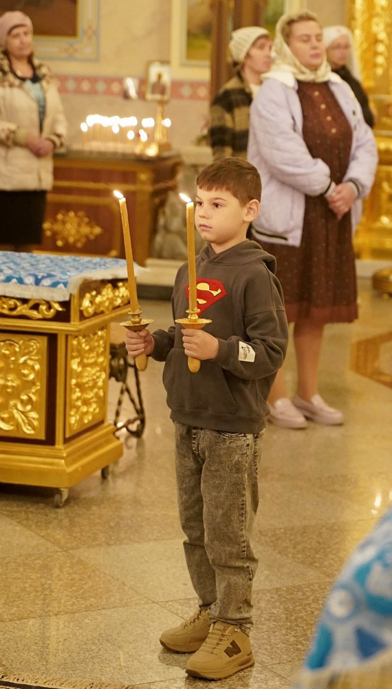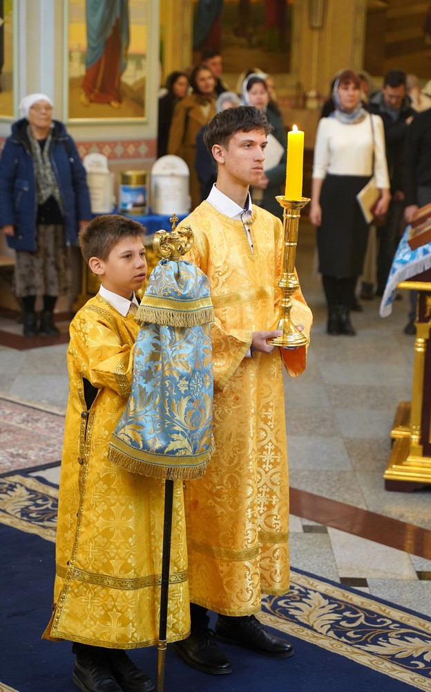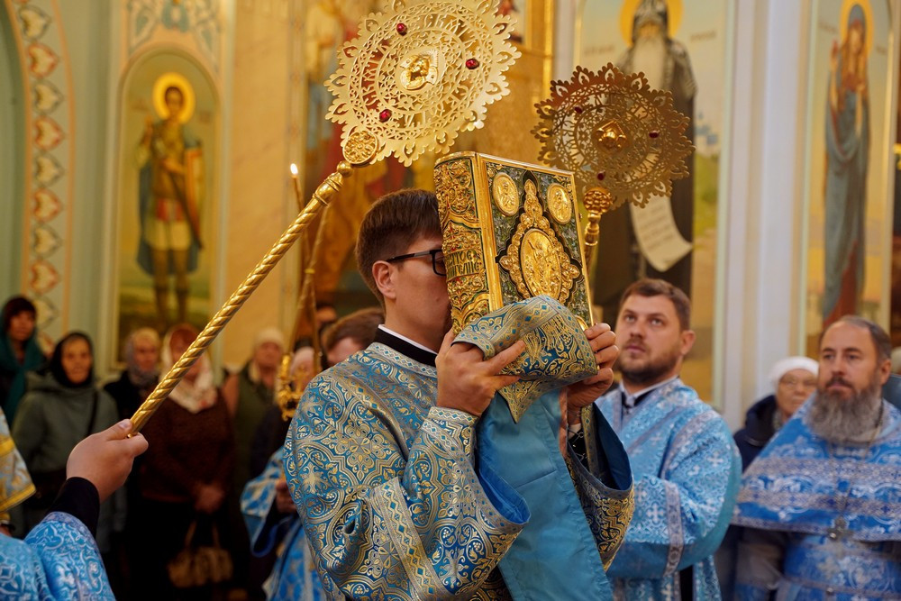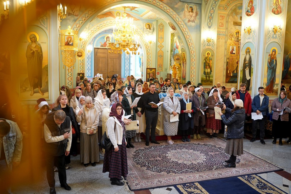 На сугубой ектении были вознесены молитвы о Святой Руси. Богослужебные песнопения исполнил хор собора под управлением регента Екатерины Артюховой.