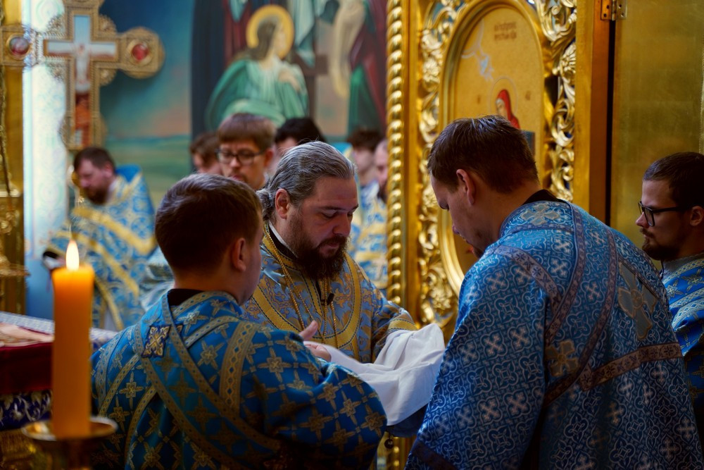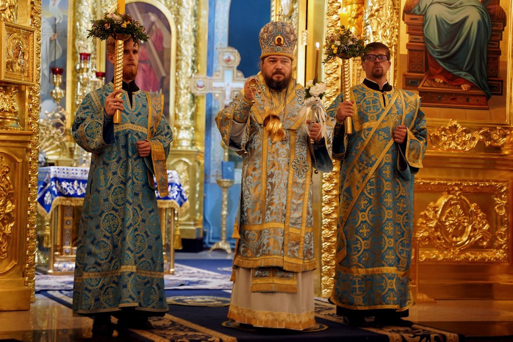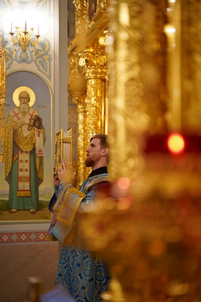 На сугубой ектении были вознесены молитвы о Святой Руси. Богослужебные песнопения исполнил архиерейский хор под управлением Екатерины Артюховой. Часть песнопений исполнил народный хор прихожан кафедрального собора.