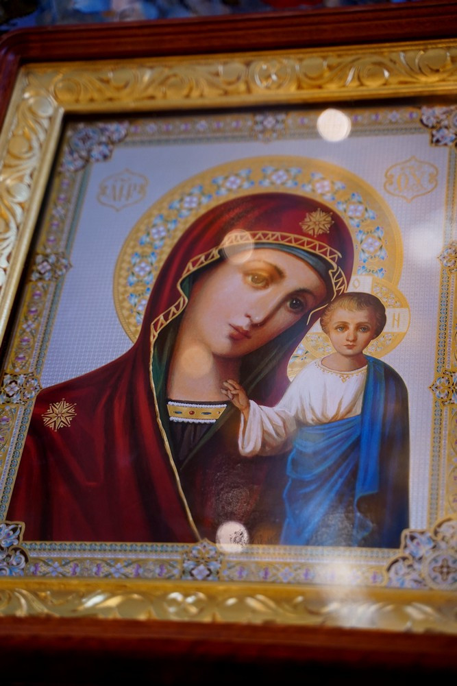 По заамвонной молитве совершено славление Казанской иконе Божией Матери.