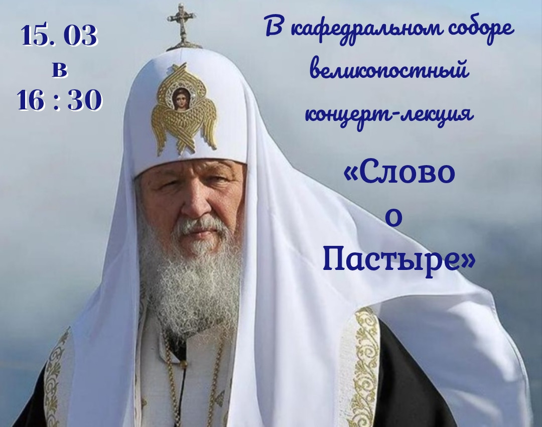 Братья и сёстры. В воскресенье, 15. 03 в 16 часов состоится традиционный великопостный концерт-лекция, посвящённый двум знаменательным датам: 80 - летнему юбилею Святейшего Патриарха Московского и всея Руси Кирилла и 50 – летию его архиерейской хиротонии.