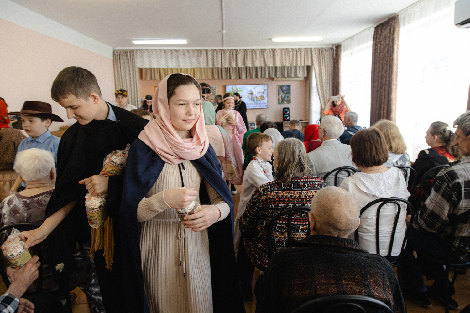 Дети представили театрализованное представление, владыка тепло поздравил пожилых людей и сотрудников, вручив каждому подарок.