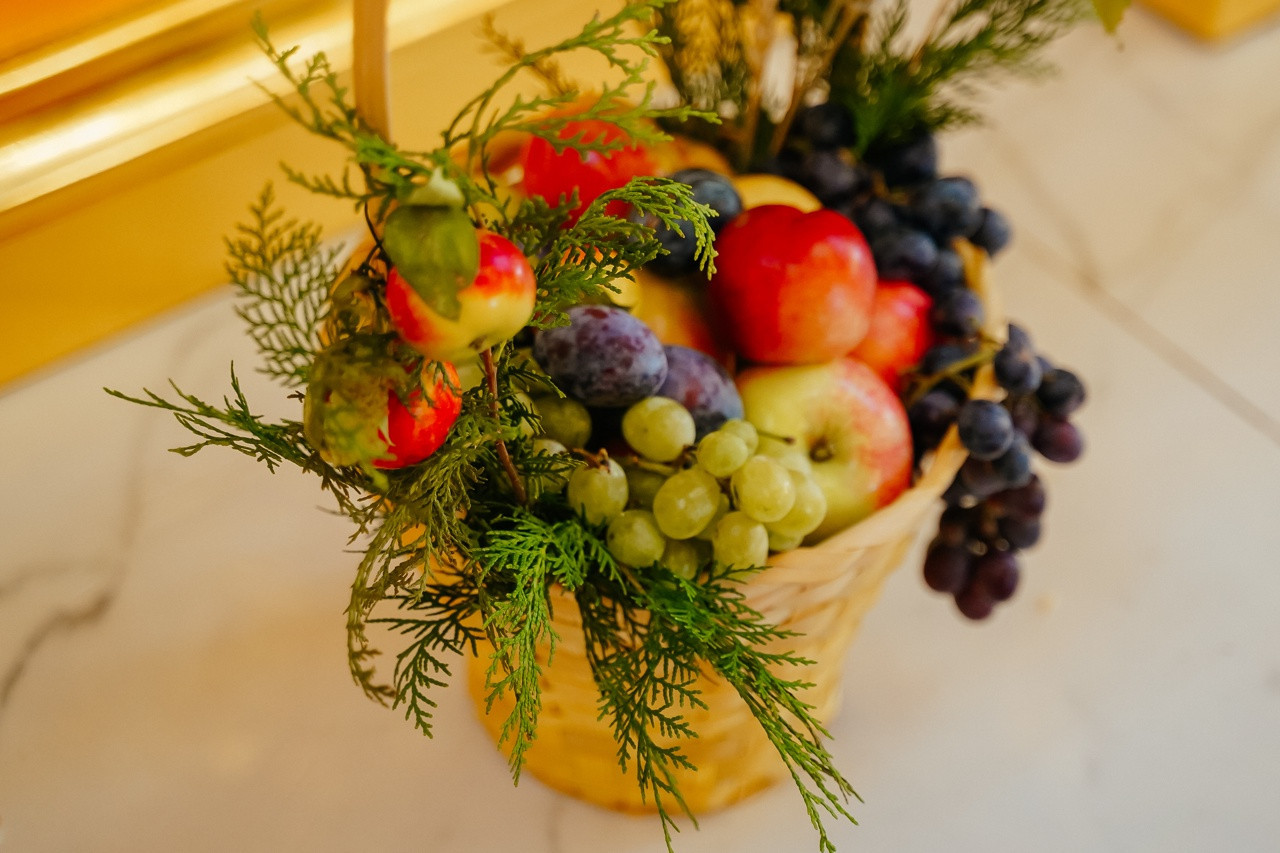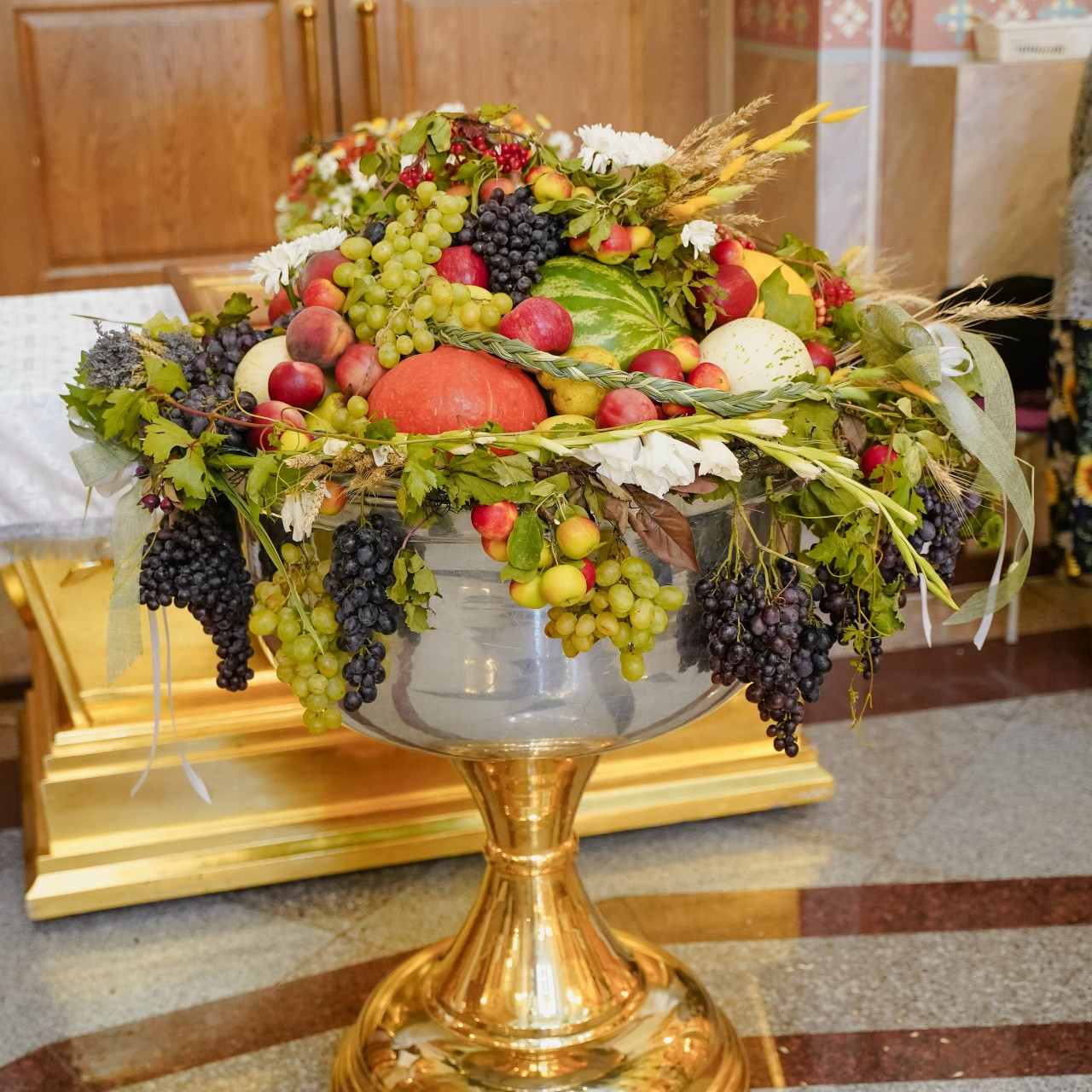 На сугубой ектении были вознесены молитвы о Святой Руси. По заамвонной молитве архипастырь совершил освящение плодов нового урожая.